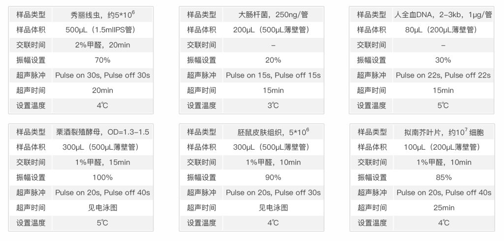 主要用于細菌細胞破碎、蛋白質抽提、二代測序樣本DNA片段化、免疫共沉淀實驗、霉菌孢子破碎、乳化、均質、加速溶解、催化反應。